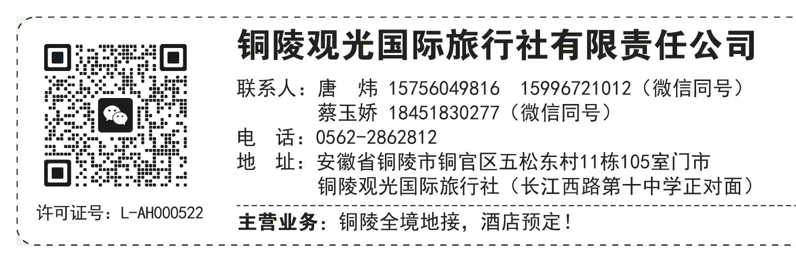 Copyright 安徽銅陵市觀光旅行社有限責(zé)任公司 地址: 安徽省銅陵市長江西路第十中學(xué)正對(duì)面銅陵觀光國際旅行社(五松東村11棟105)